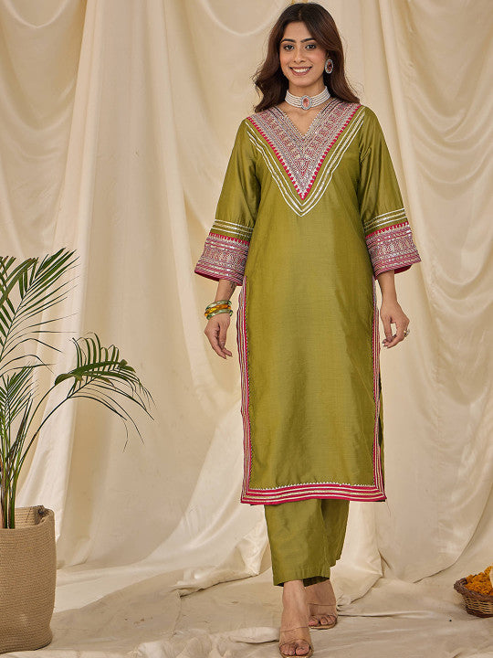 Women Ethnic Motif Embroidered Sequinned Kurta with Trousers & Dupatta